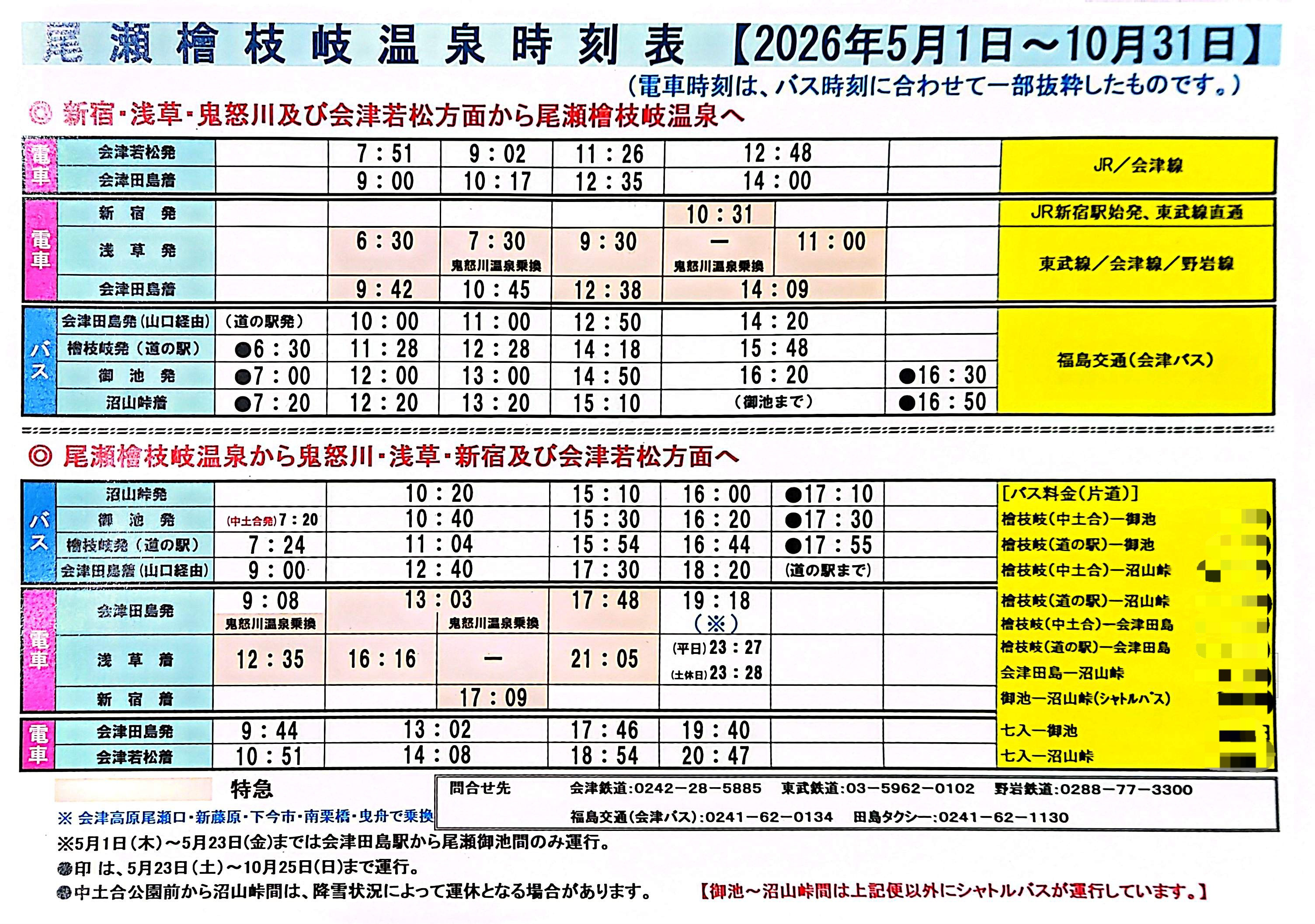 本日尾瀬檜枝岐温泉観光協会の総会があり、5月以降の路線バスである会津バスの時刻表が配布されました。